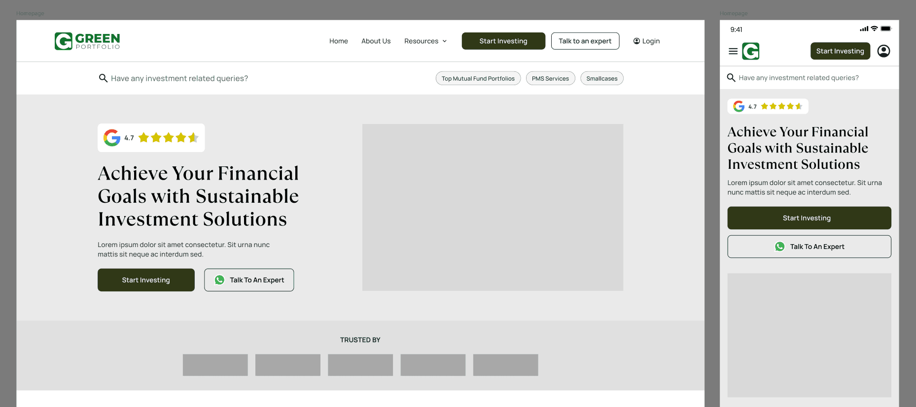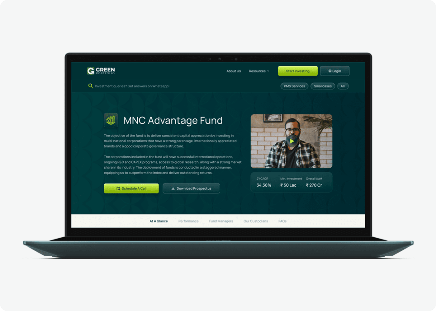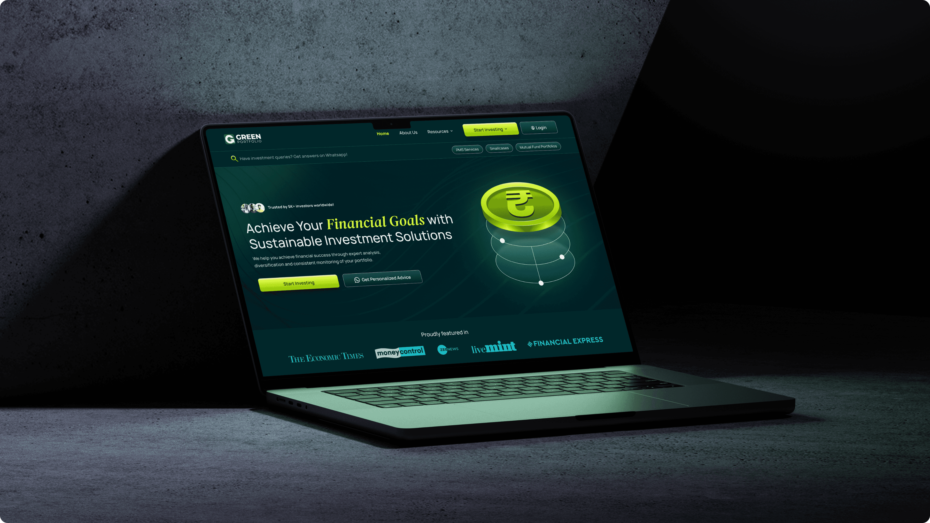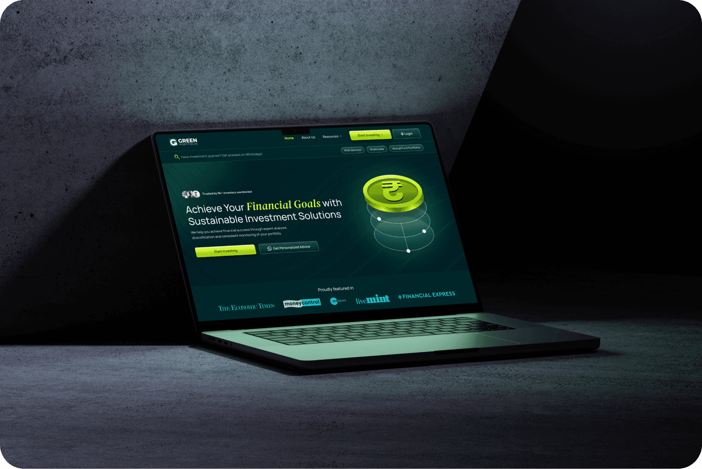 Green Portfolio aimed to establish a credible and conversion-focused digital presence for their investment offerings. The primary goals were to clearly communicate their value proposition, build trust with high-intent investors, and enable users to discover and invest in portfolios aligned with their financial goals.
