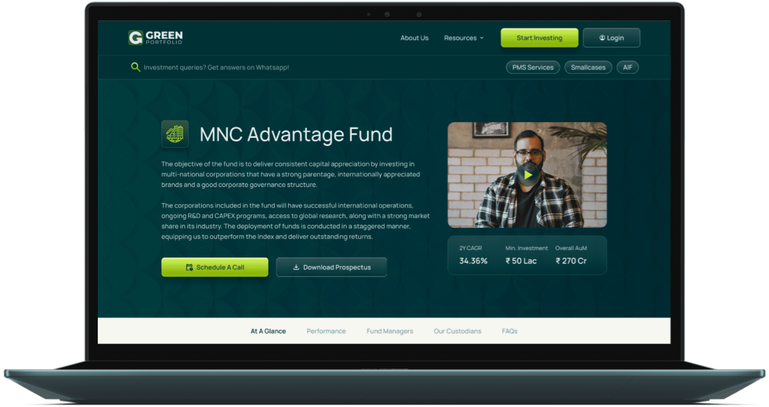 Green Portfolio is a Portfolio Management Service (PMS) and Research Analyst firm specializing in the Indian equity markets. The company offers personalized, goal-based investment management solutions focused on high-returns, tailored to individual financial objectives. In addition to PMS, Green Portfolio facilitates investments in smallcases for their retail investors. They recently also launched their AIF.