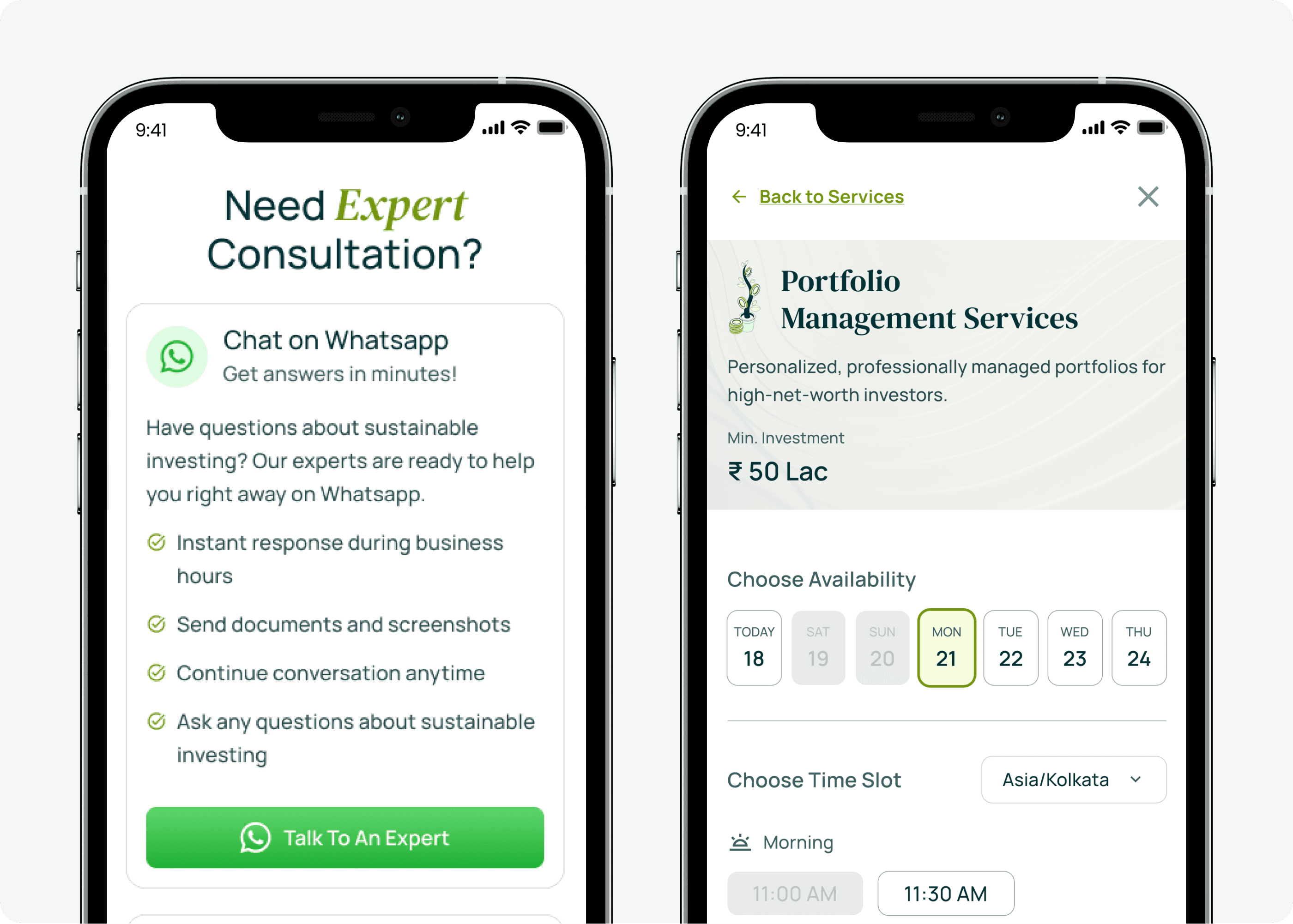 Integrated WhatsApp and enabled structured call booking, allowing investors to instantly connect or schedule consultations at their convenience.