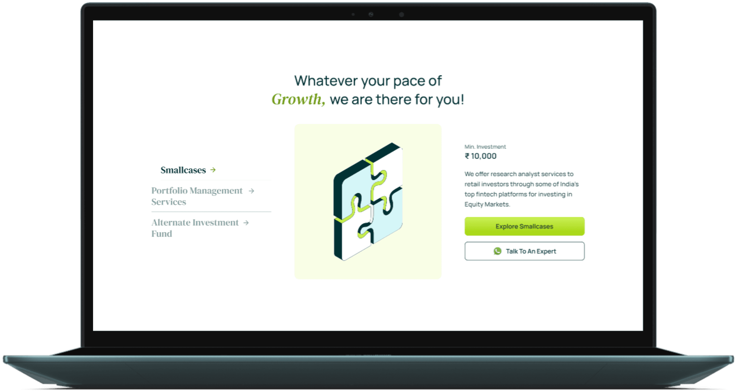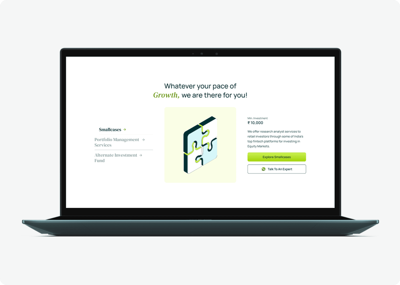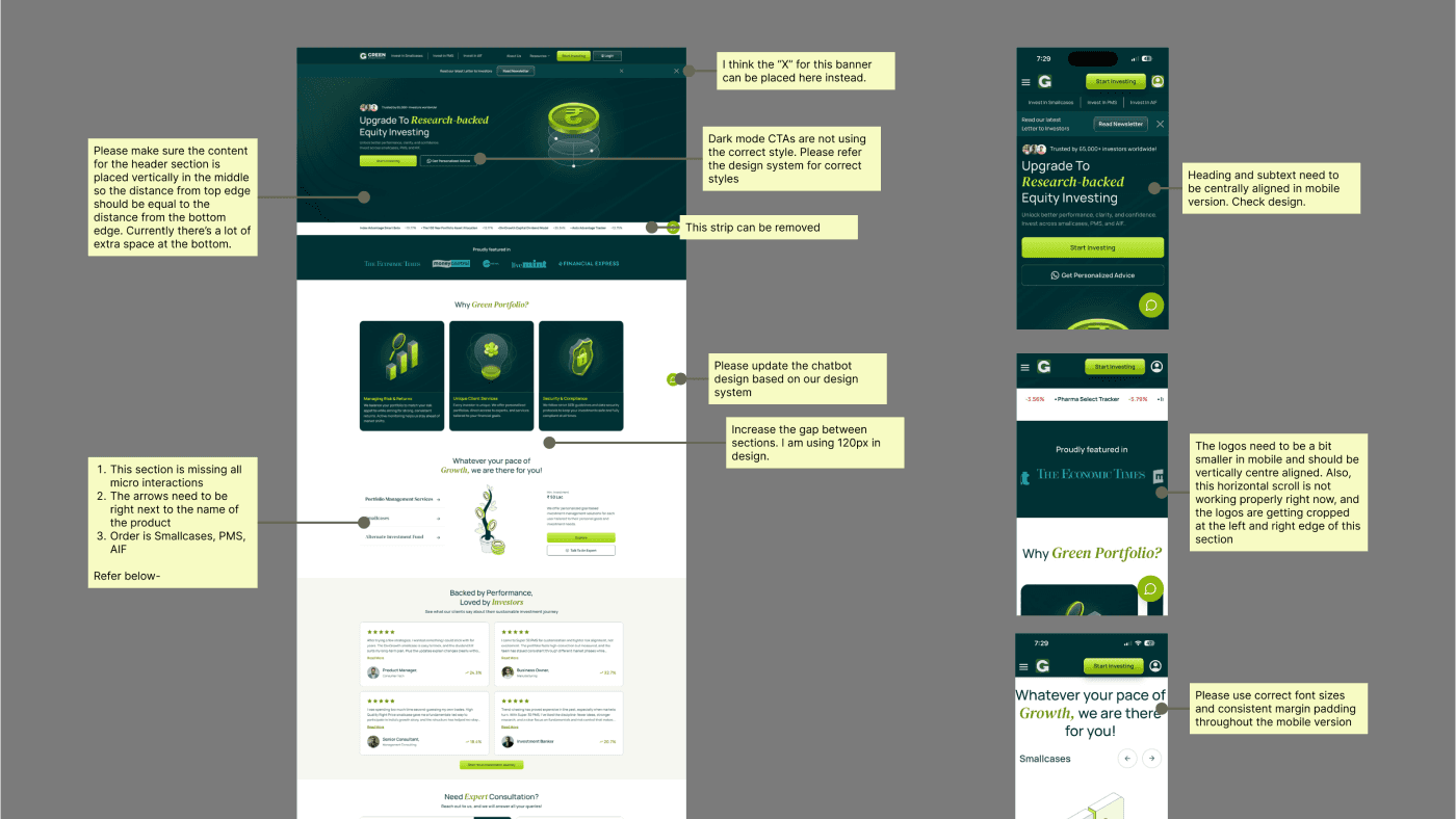 Our UX audit of Green Portfolio was conducted as a strategic evaluation of how effectively the platform supported discovery, trust-building, and conversion across its smallcase, PMS, and AIF offerings.