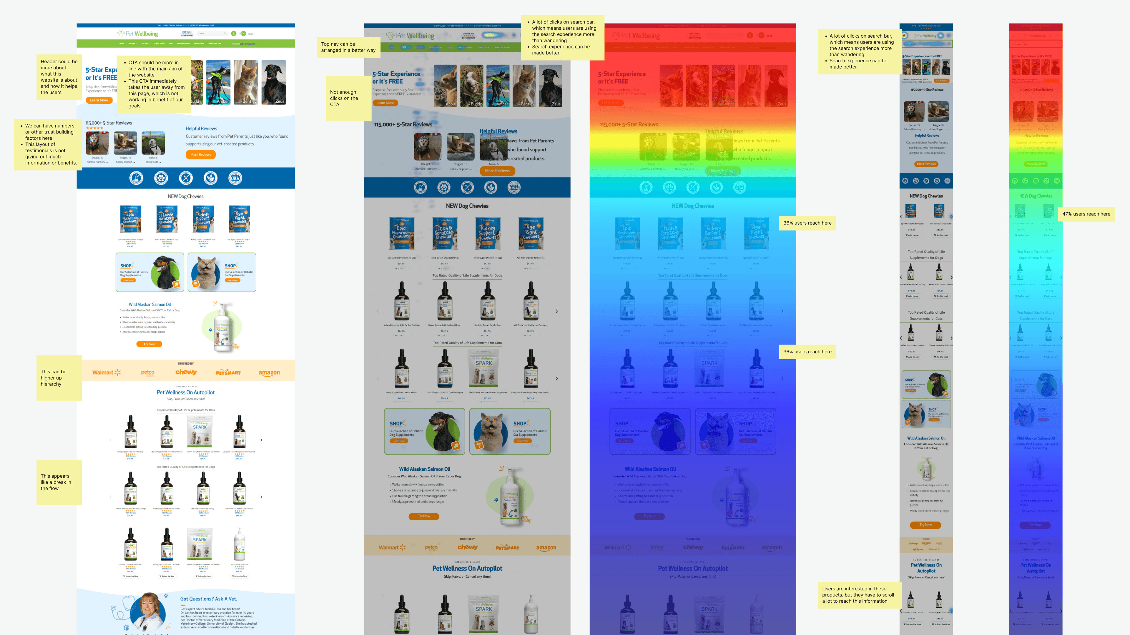 There was little reassurance for new users. No visible indicators of vet approval, customer reviews, or money-back guarantees, which are key for conversion in health and wellness markets.