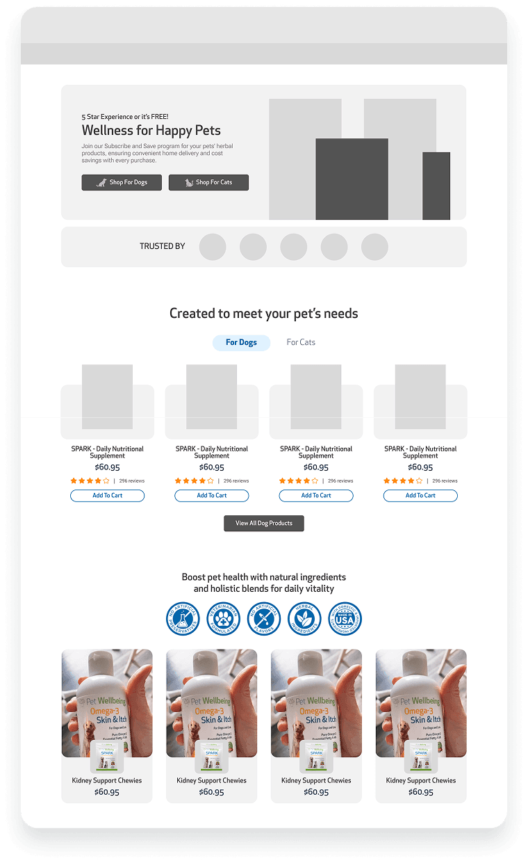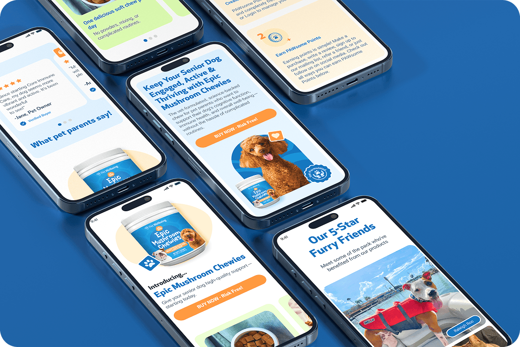 Pet Wellbeing needed to establish a cohesive and conversion-driven brand presence across packaging, social media, and their website. Their existing experience lacked consistency and clarity, making it difficult for customers to understand the value of their vet-formulated natural products and confidently choose the right solution for their pets.